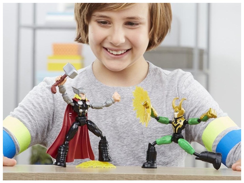 Thor se postaví Lokimu. Tato bojová sada Avengers Bend and Flex obsahuje velmi variabilní figurky. Sada obsahuje dvě postavy inspirované marvelovskými filmy a komiksy. Tyto stylizované akční figurky mají řadu kloubů, takže je děti mohou aranžovat do různých poloh. Zahrnuje figurky Thor a Loki.