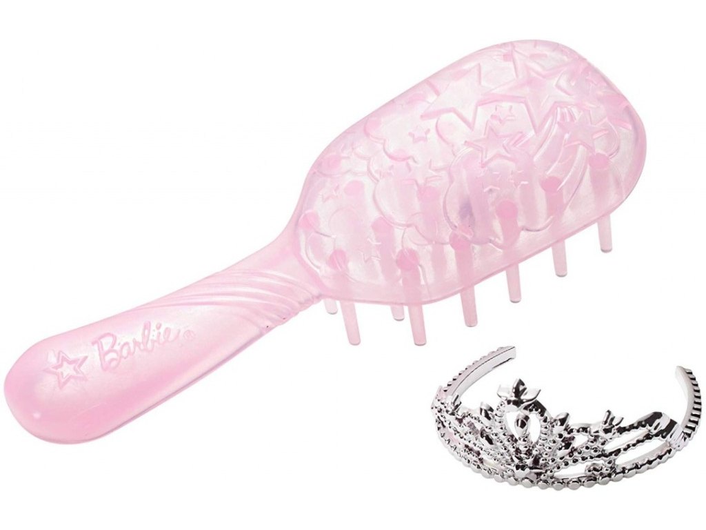 Stiskněte tlačítko na opasku a vychutnej si dech beroucí proměnu! Šaty skvěle doplňuje stylový šál z umělé kožešiny a nesmí samozřejmě chybět ani korunka. Použijte přiložený hřeben a učešte princezně Barbie® ten nejkrásnější účes. ♥︎