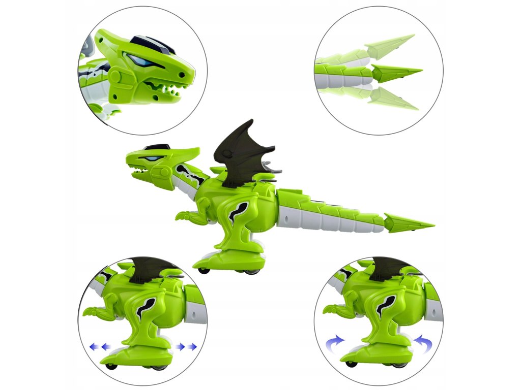 Nový domácí mazlíček? Ano, tento zelený dinosaurus se jim může stát. Udělejte dětem radost s tímto okřídleným dinosaurem o velikosti 45 cm a mnoho funkcemi od chození všemi směry po hýbáním ocasem - všechny další funkce najdete níže.