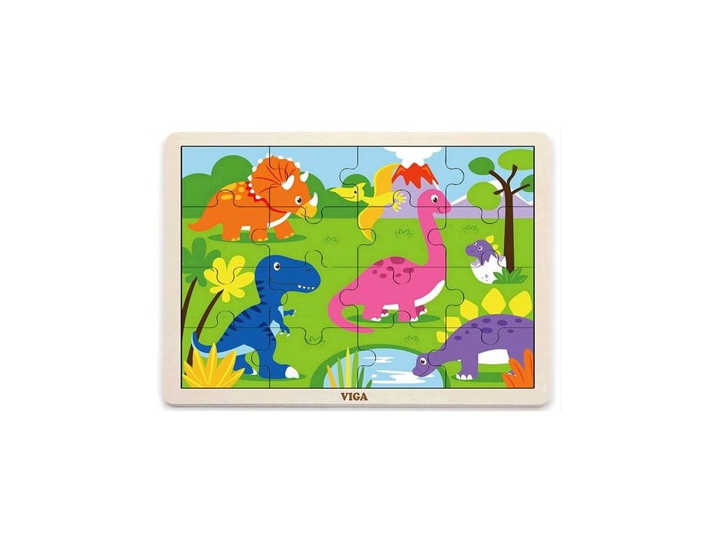 Dřevěné puzzle 16 dílků - dinosauři
