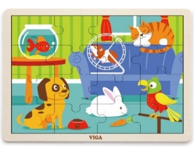 Dřevěné puzzle 16 dílků - domácí mazlíčci