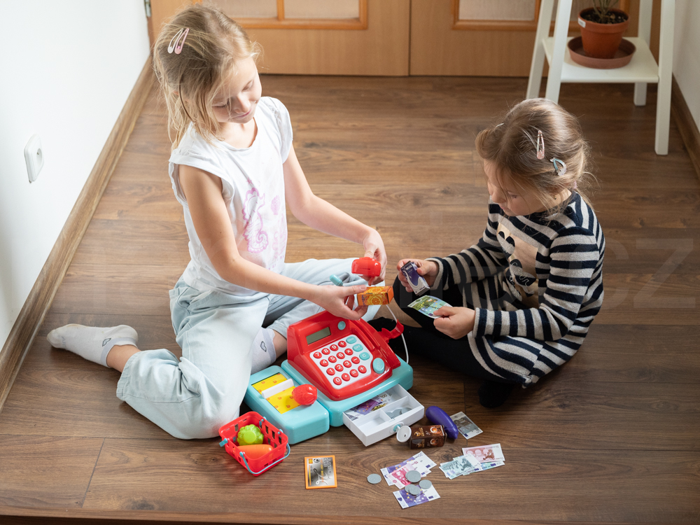 # pokladna pro děti # dětská pokladna # funkční pokladna # pokladna se zvuky # hra na obchod # pokladna s příslušenstvím # pokladna s nákupním košíkem # dětský obchůdek # pokladna co počítá # pokladna se zvuky # červená pokladna # pokladna s bankovakmi # pokladna se skenováním