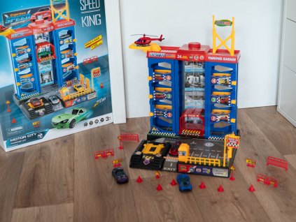 Garáž 3 patra, se silnicemi a 2 autíčky s autíčkem