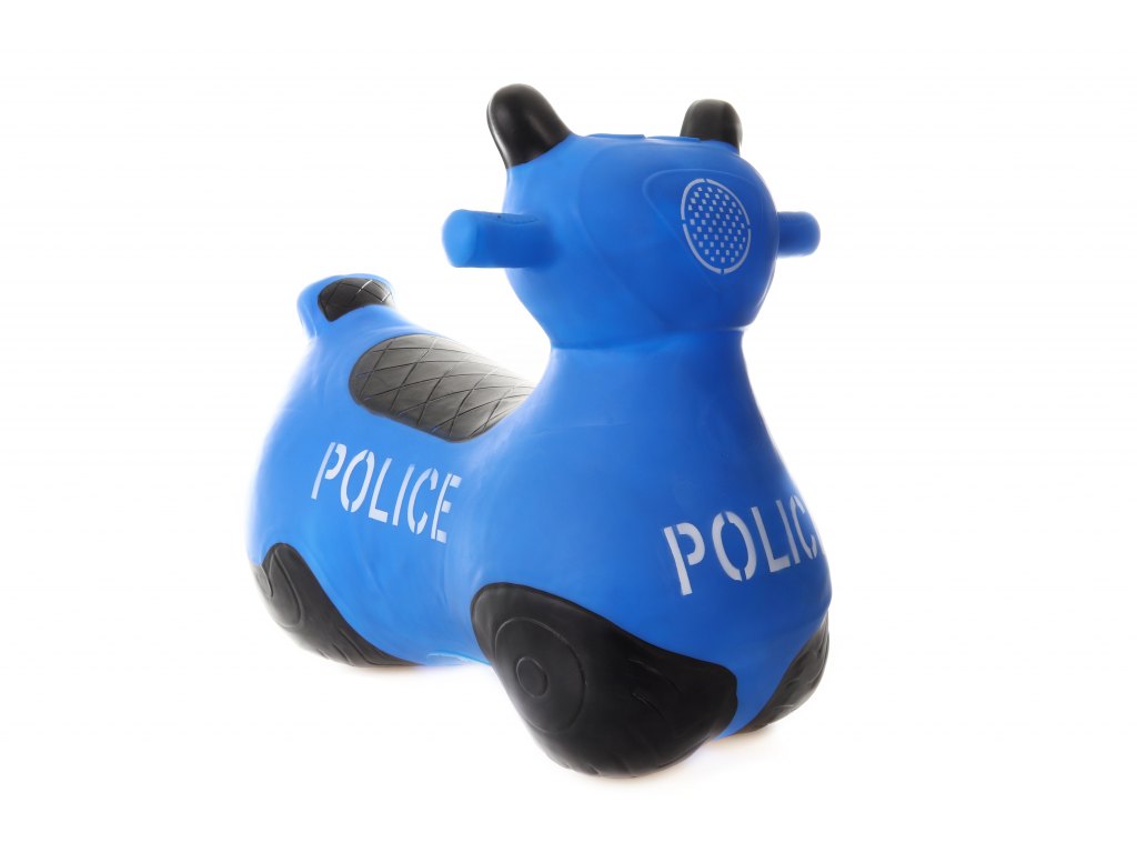 Skákací policejní motorka je pro děti zábavnou hračkou a trochu i sportovním náčiním. Na rozdíl od skákacího balónu je stabilnější a bezpečnější i pro malé děti.