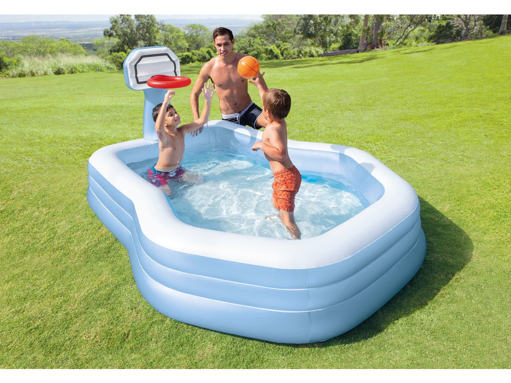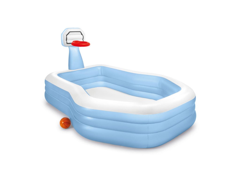 Nafukovací hrací centrum s basketbalovým košem a míčem se postará o zábavu i osvěžení v horkých letních dnech! Bazén má dvě vzduchové komory s dvojitým ventilem pro rychlé nafouknutí a vyfouknutí.
