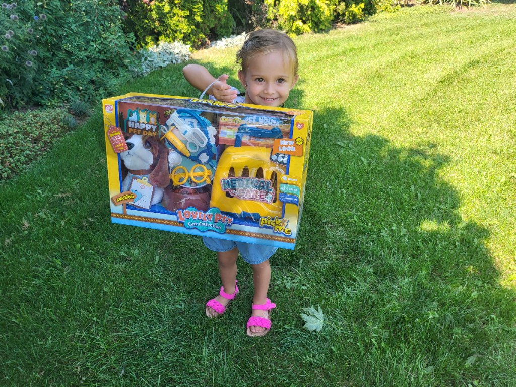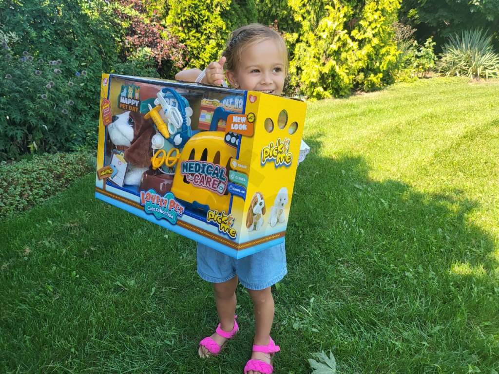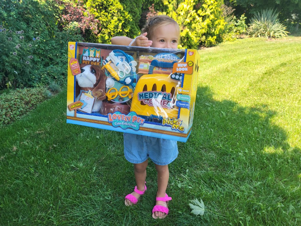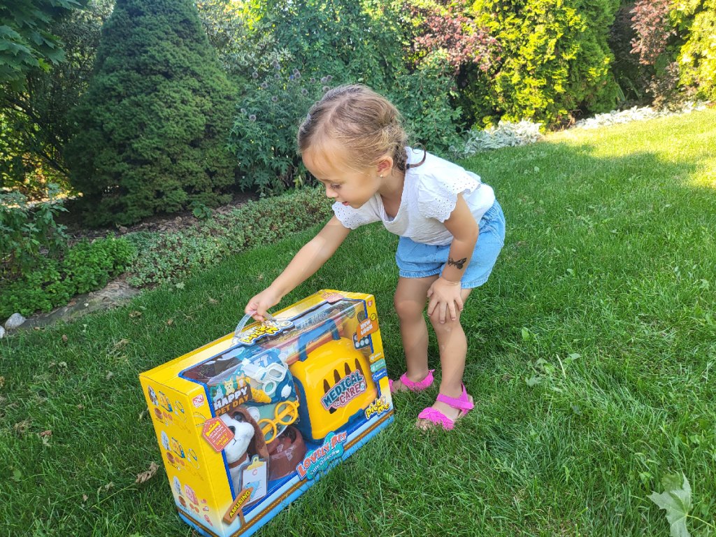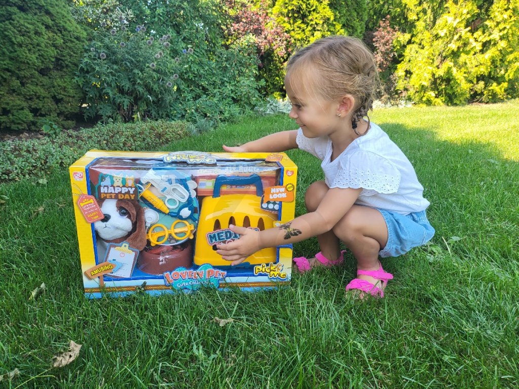 Zdá se vám pejsek nemocný? Poslechněte mu stetoskopem srdíčko, možná bude třeba mu dát injekci. Součástí sady je také miska, krmení z konzervy a klasické psí pamlsky za odměnu.