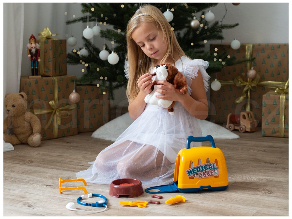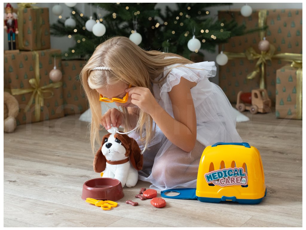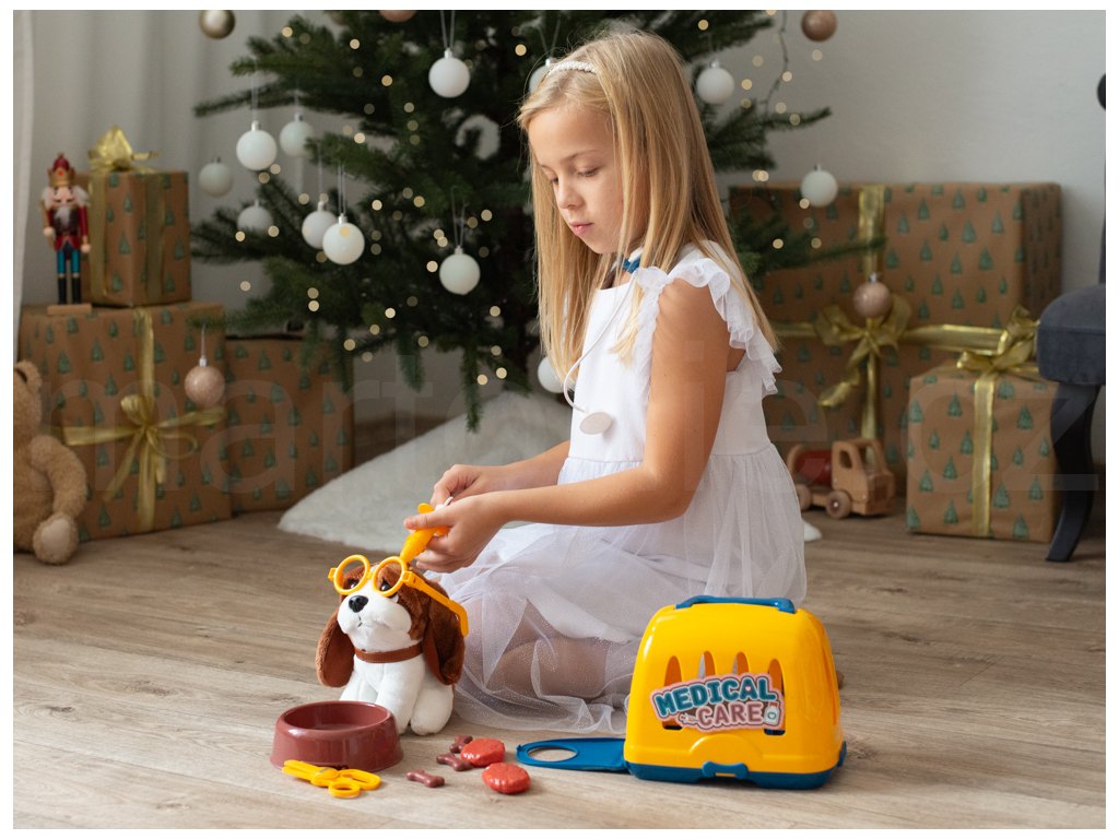Přeje si být vaše dítě veterinářem? Pak ho určitě potěší tato sada s plyšovým pejskem, o kterého můžou pečovat. Pejsek je vyroben k kvalitního plyše a můžete ho přenášet v plastové přepravce.
