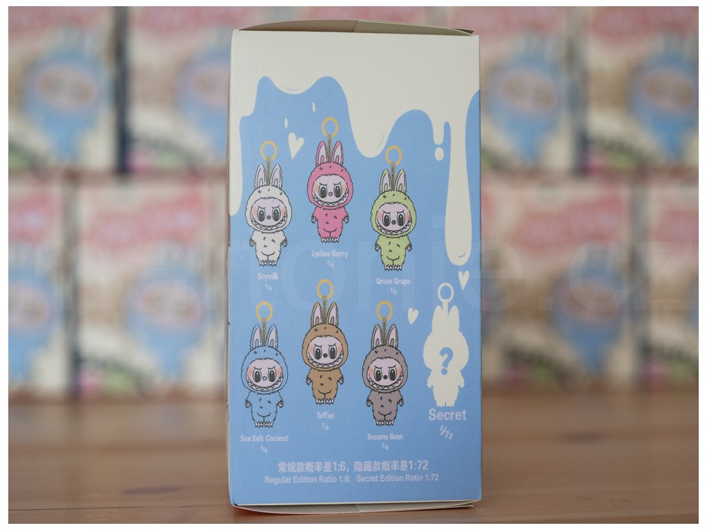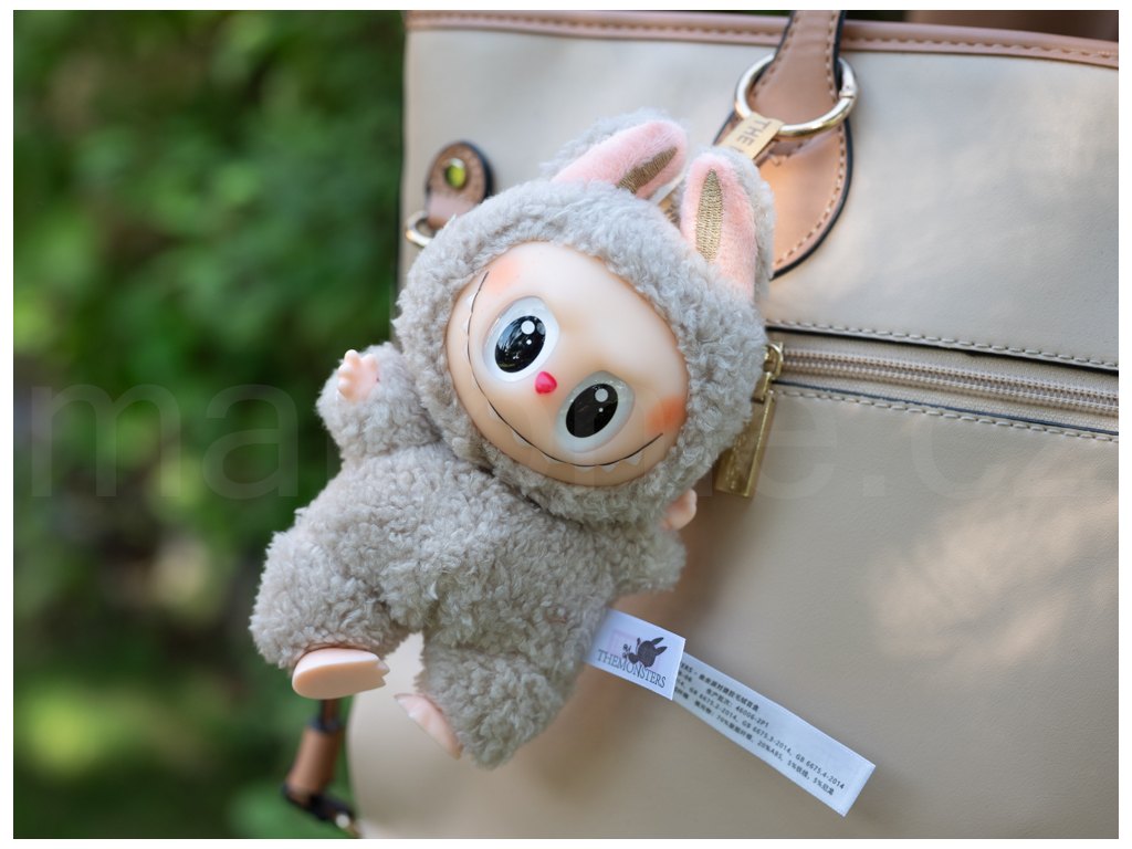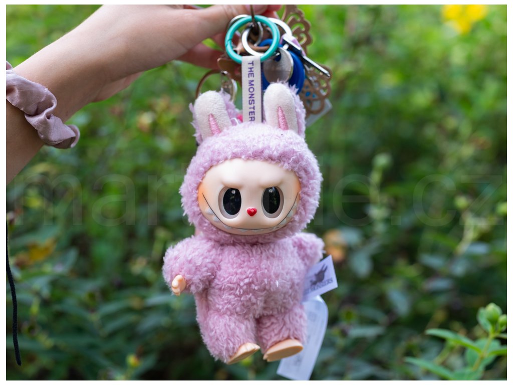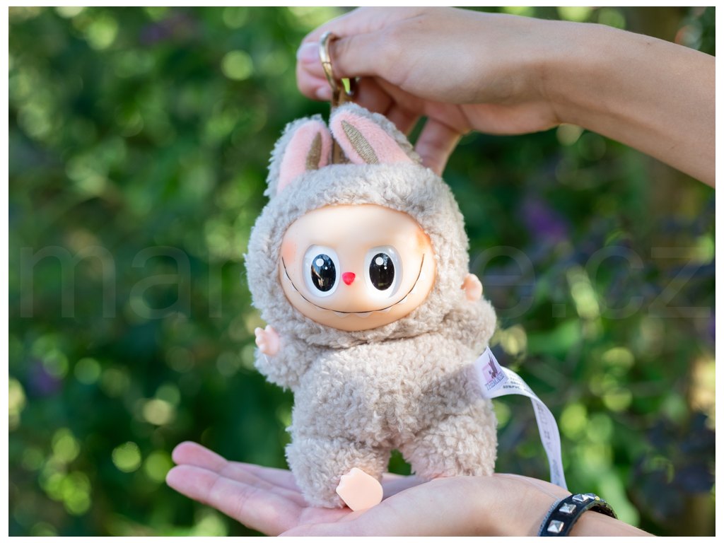 Která by se vám líbila? Soymilk, Lychee Berry, Green Grape, Sea Salt, Coconut, Toffee, Sesame Bean nebo tajná Labubu? Postavička jev jemných barváchí a měří v sedě 16 cm, má heboučkou trošku jiný druh srsti, než ostatní Labubu a nechybí ani poutko s kroužkovou karabinkou na zavěšení. Postavičku si můžete pověsit na batoh, tašku, kabelku nebo na klíče. Kroužek lze sundat.