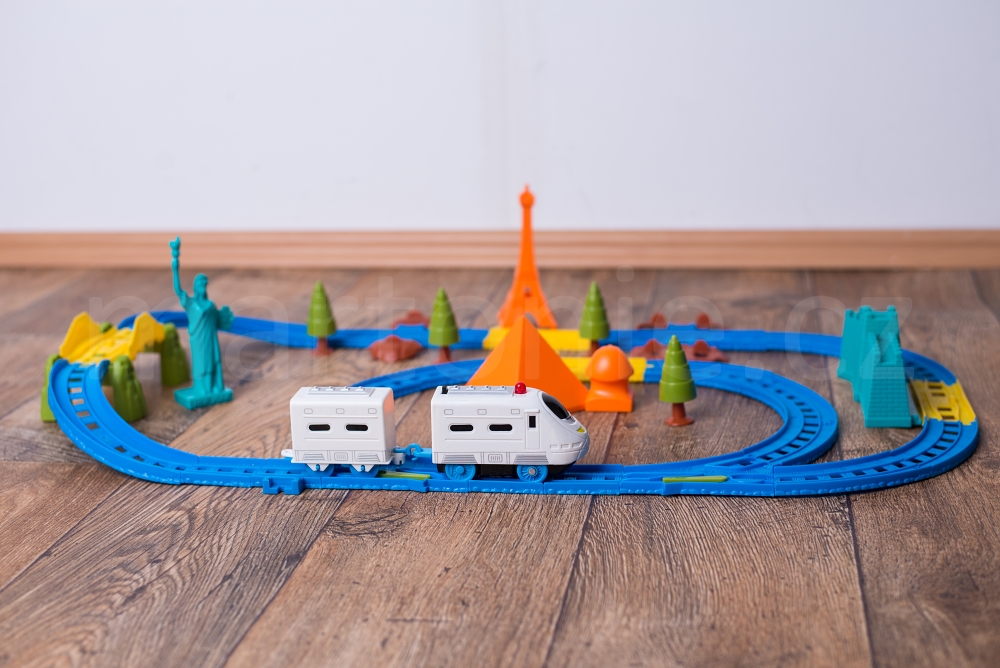 Co má vlak povídat rozlišuje podle jednotlivých výstupků na žlutých kolejích. Při skládání je proto nutné dávat pozor, aby všechny žluté koleje byly položeny správně ve směru jízdy. Součástí jsou dvě výhybky a most a několik stromečků.