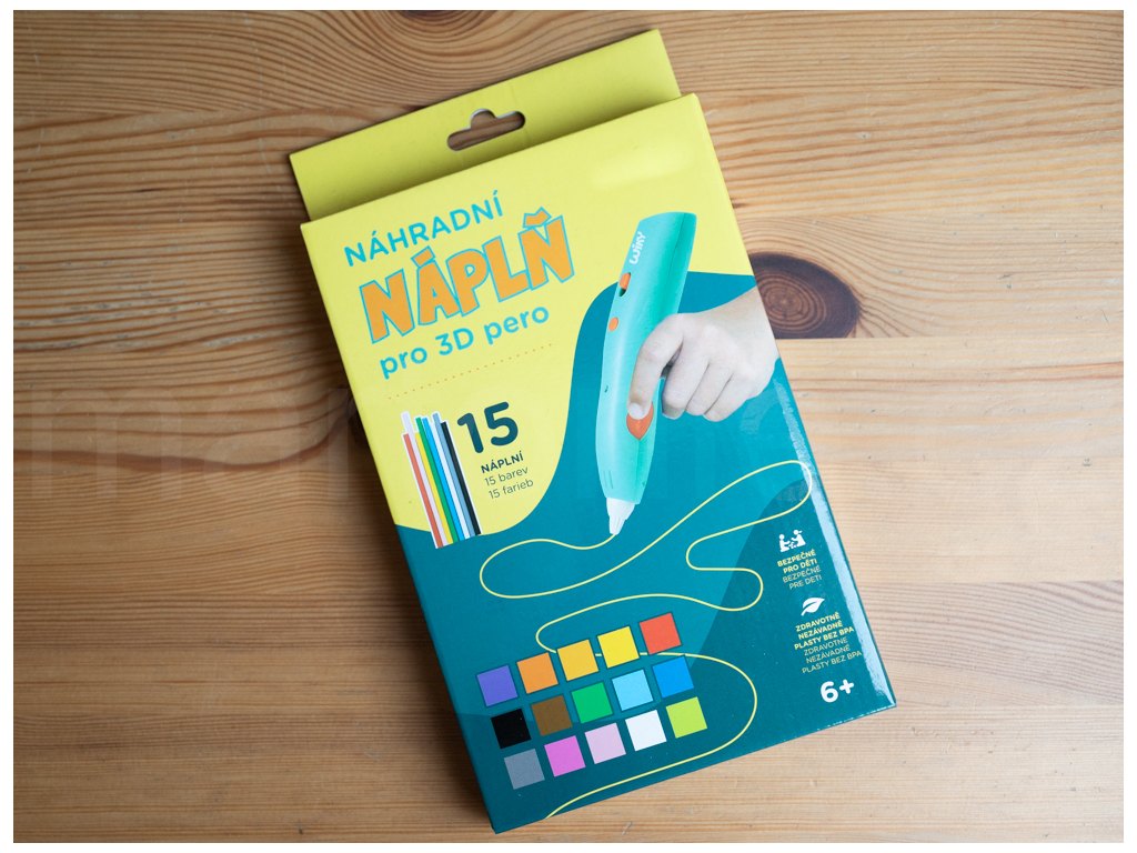 15 barevných náplní, každá o délce 3 metry pro 3D pero