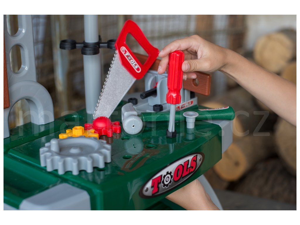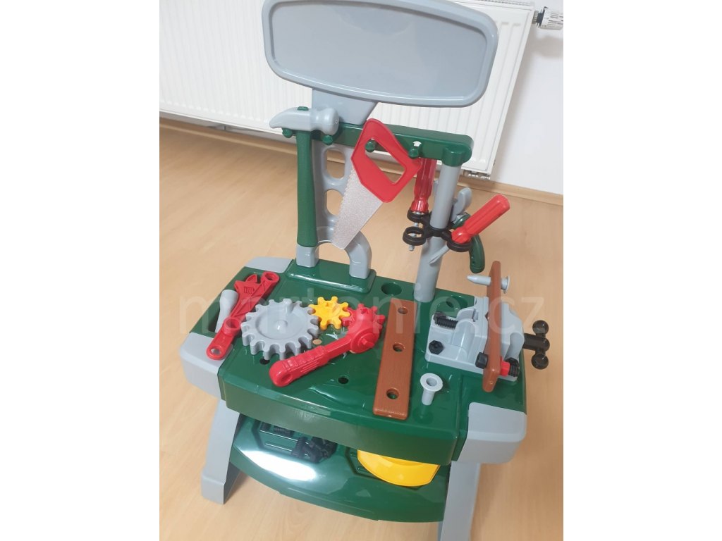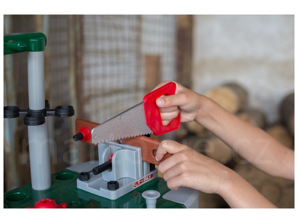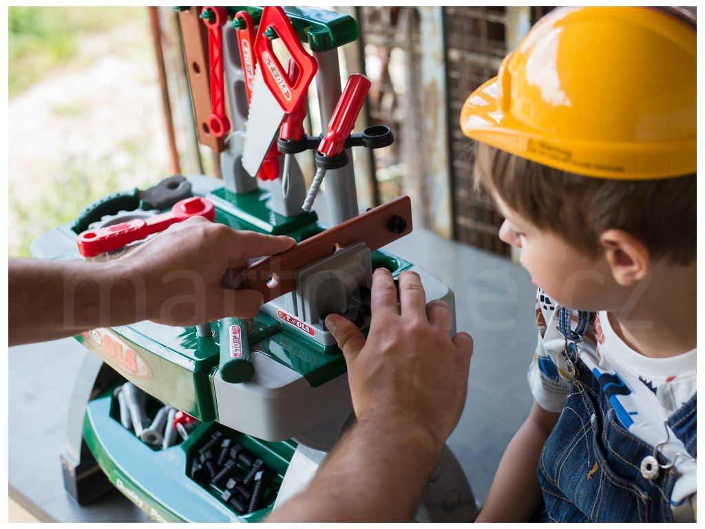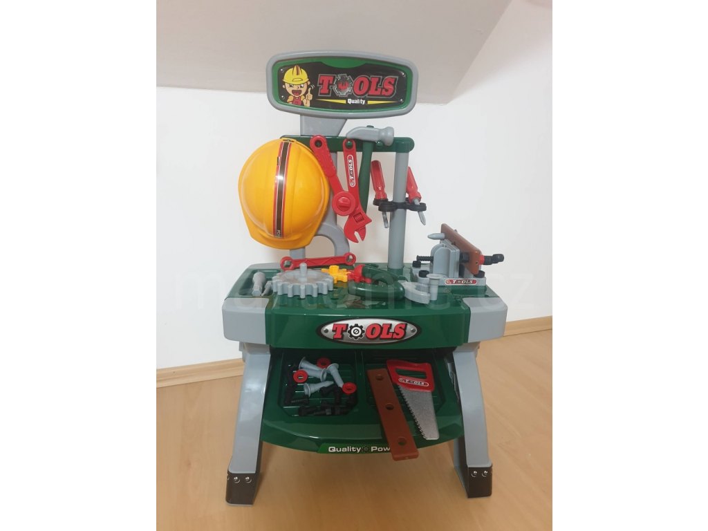 - balení obsahuje: stolek, helmu, kleště, kladivo, šrouby, matice, pilku, svěrák a další nářadí