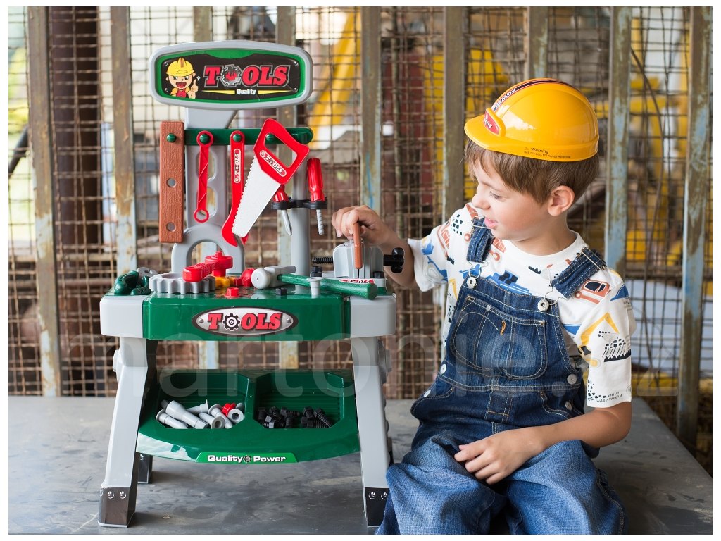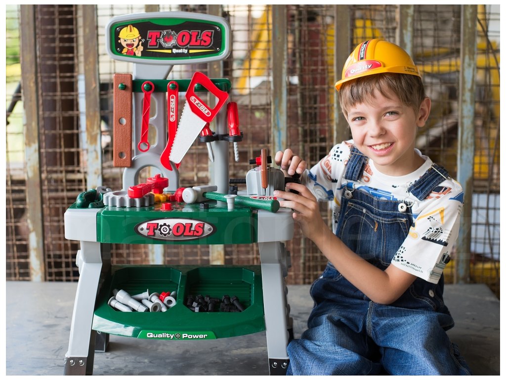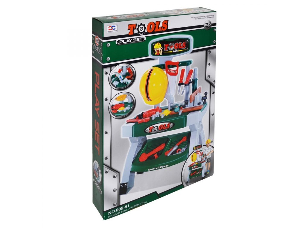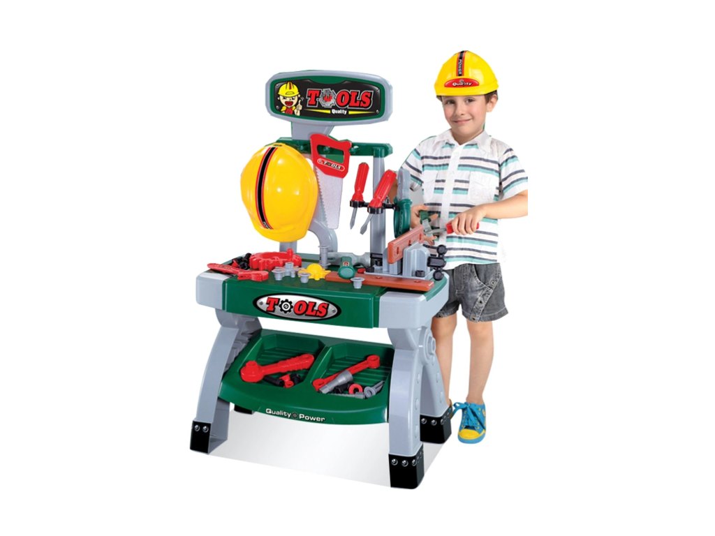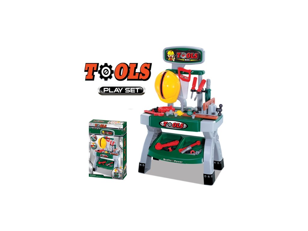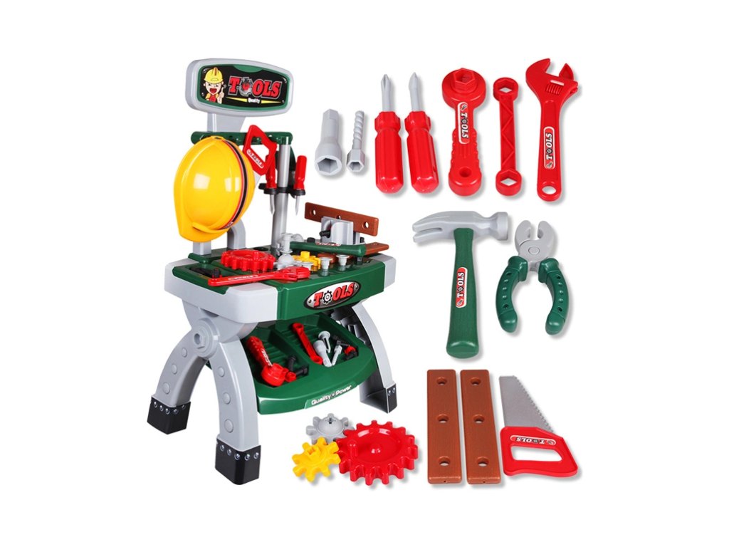 - balení obsahuje: stolek, helmu, kleště, kladivo, šrouby, matice, pilku, svěrák a další nářadí