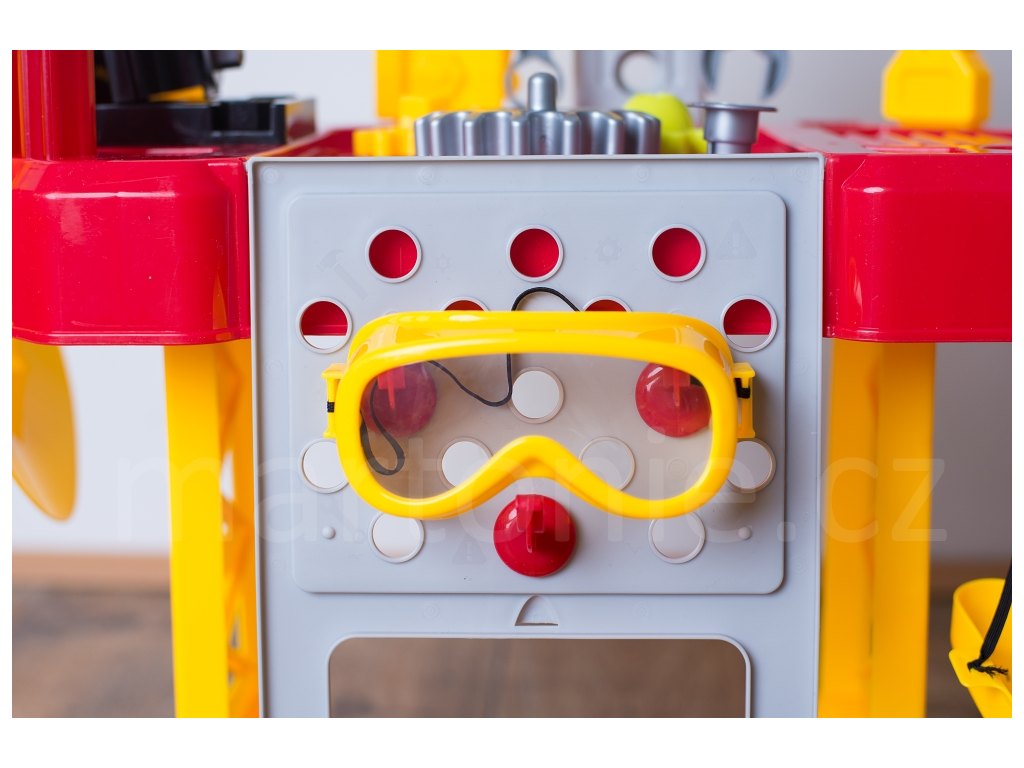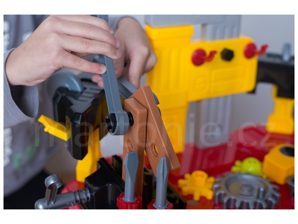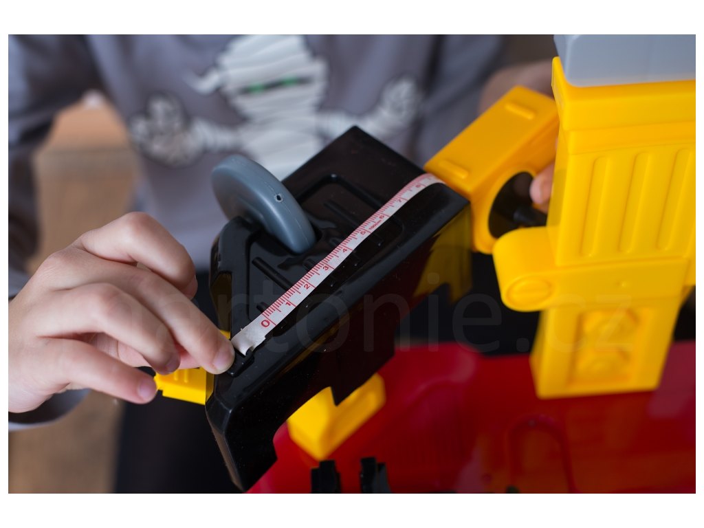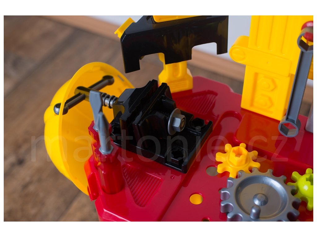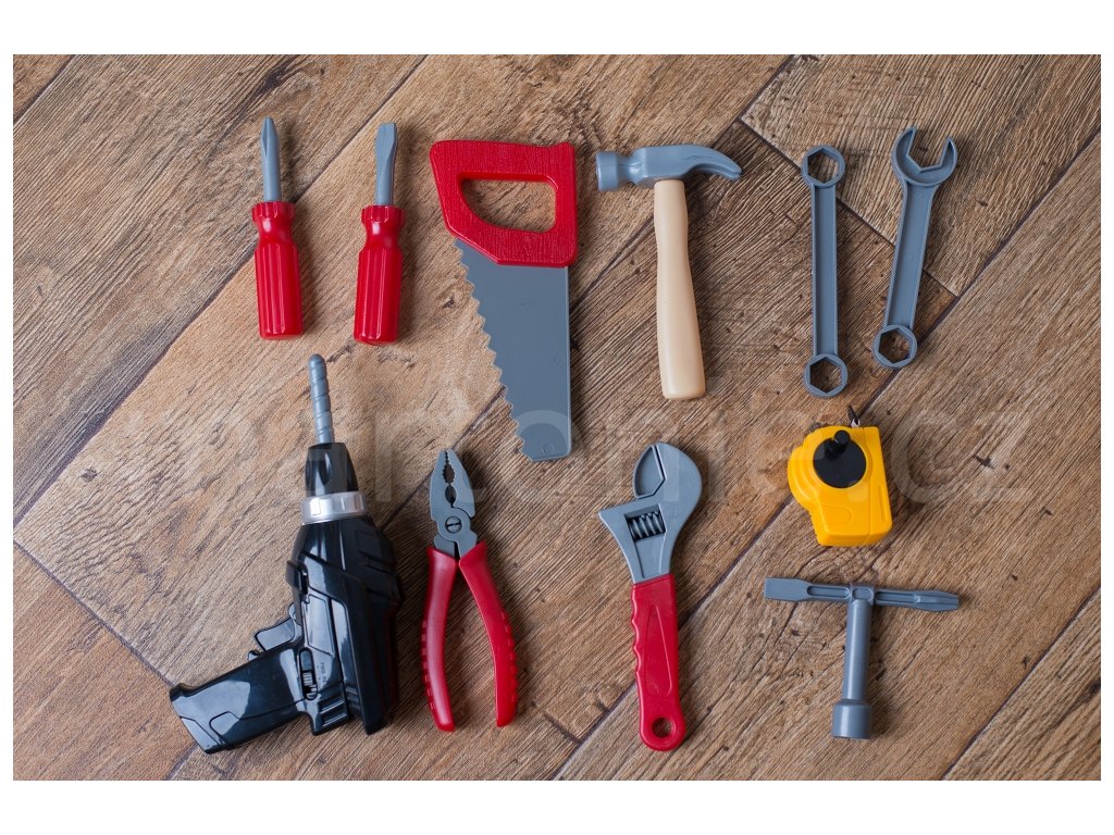 Nechybí ani metr, pila, kladívko a další nářadí, které najdeš v každé správné dílně. Dokonce i svěrák tu je, do kterého můžete uchytit kousek "dřívka" a šroubovat.