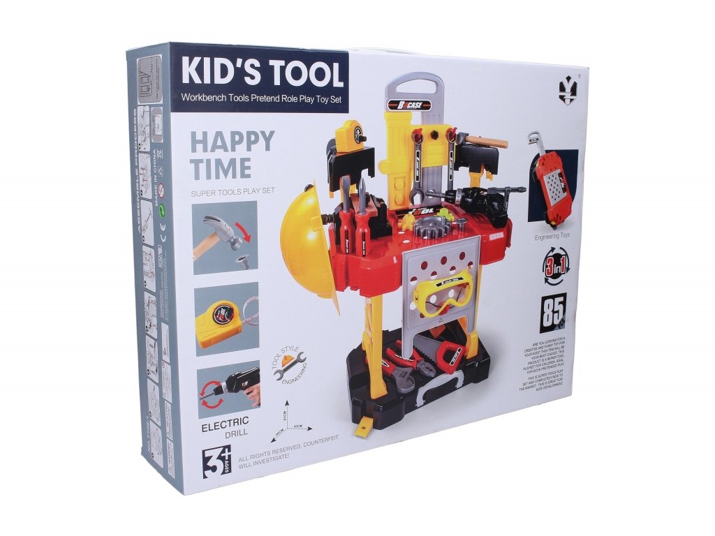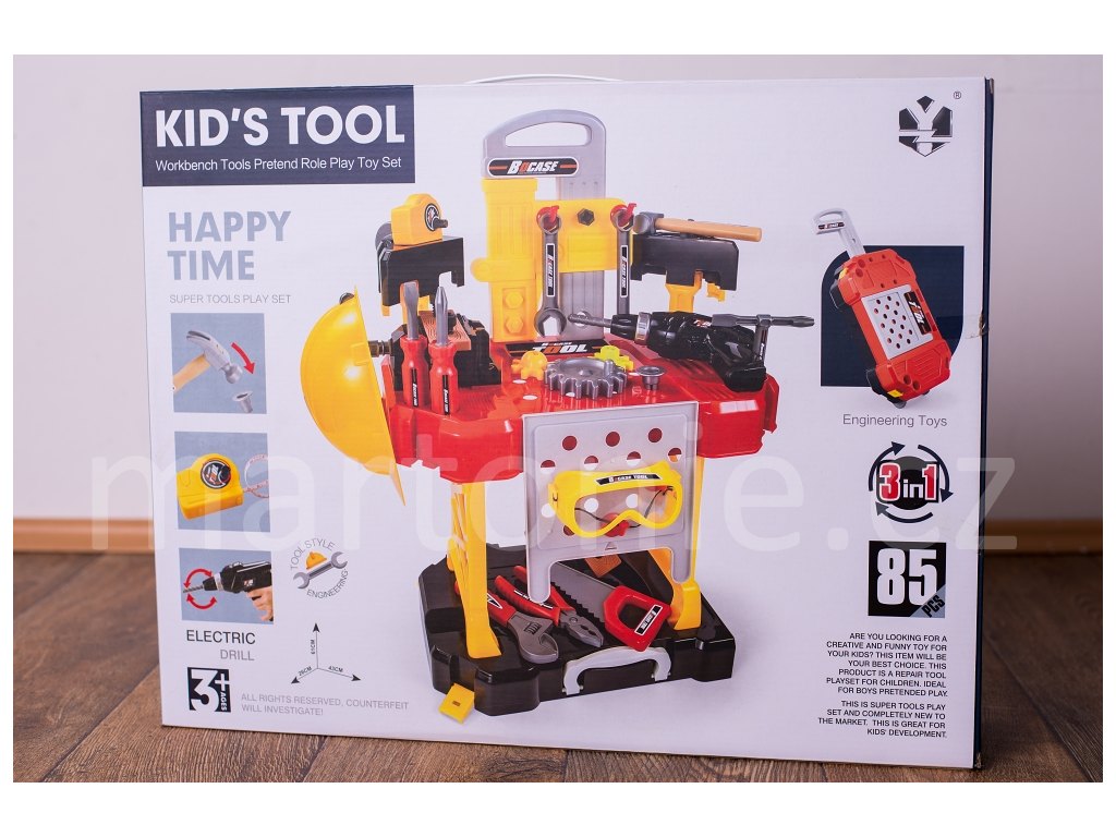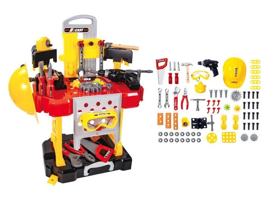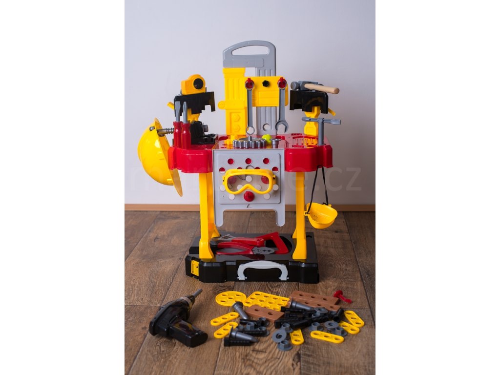 Nářadí set stolek v kufříku 43 x 26 x 61 cm. Stavebnice šroubovací s vrtačkou a kufříkem. Funkční nářadí pro děti