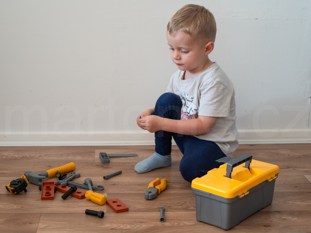 # nářadí pro děti # nářadí v boxu # nářadí hračka # nářadí žluté # kufřík s nářadím na hraní # nářadí od tří let # plastové nářadí # sada na šroubování pro děti # kutilská sada pro děti # dílna pro děti # klíče pro děti # šroubovák pro děti # dětské nářadí # kufr na nářadí pro děti #nářadí z plastu # bezpečné nářadí pro děti # set nářadí # hračka pro kluka # dárek pro kluka # žlutá a šedá # žlutošedé nářadí # kvalitní nářadí pro děti