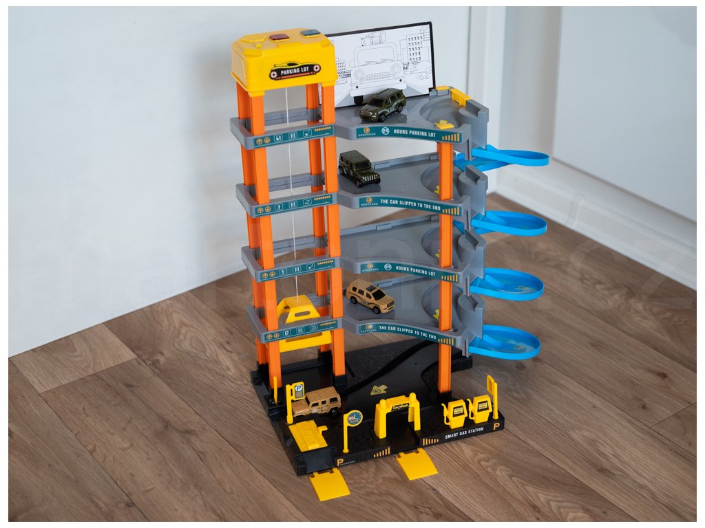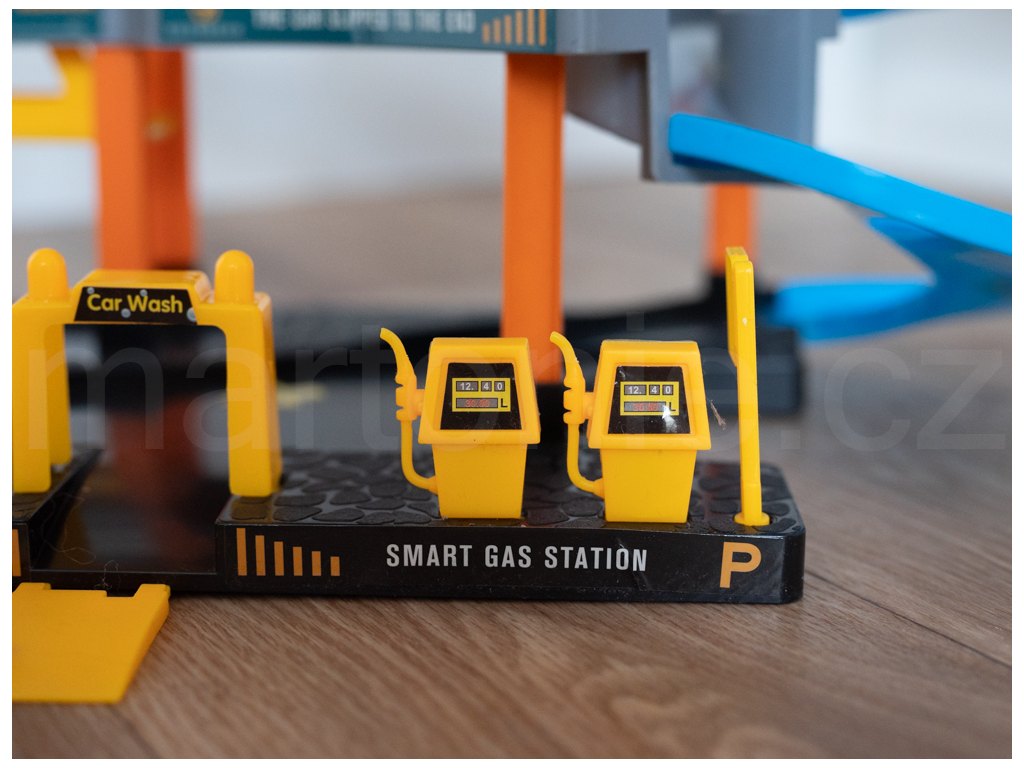 Parkovací stanice pro autíčka - hračka, kterou musí mít každý malý kluk. Tato garáž patří do větších parkovacích stanic pro děti, ale zároveň má jednu z nejlepších cen s poměrem k velikosti garáže a celkovému provedení. Sada má krásný box, v krabici najdeme i 4 pěkná autíčka.