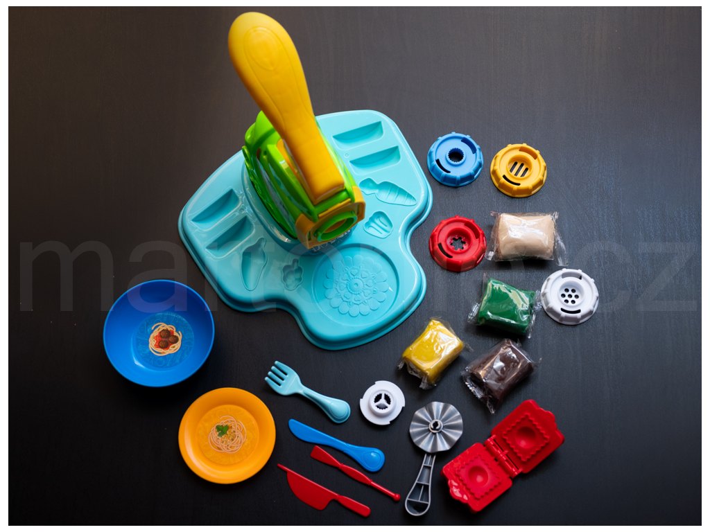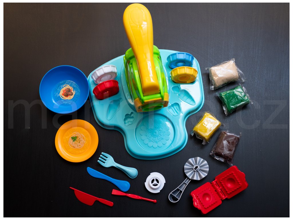 Strojek na výrobu těstovin a sušenek + 4 plastelíny a příslušenství