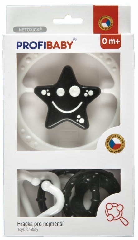 # hračky pro miminko # první hračka pro miminko # dárek pro miminko # co koupit pro novorozené miminko # černobílá hračka # první kousátko # první chrastítko # lehké chrastítko do ruky # dárkové balení chrastítek # české chrastítko # nezávadná chrastítka