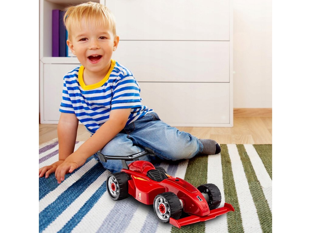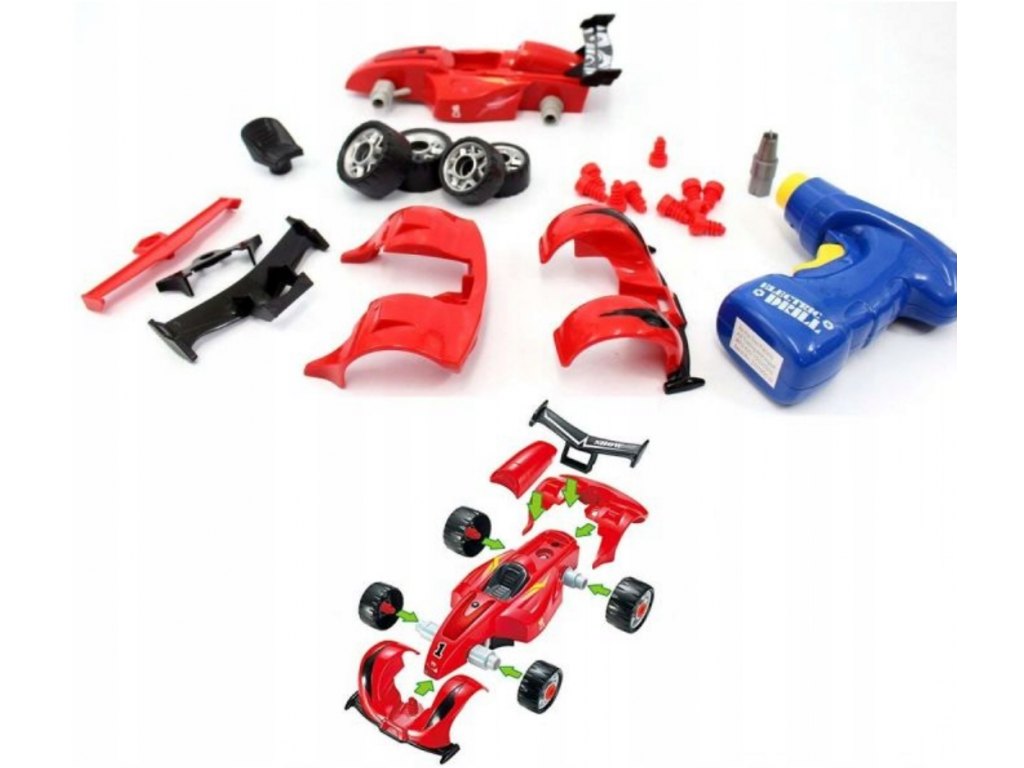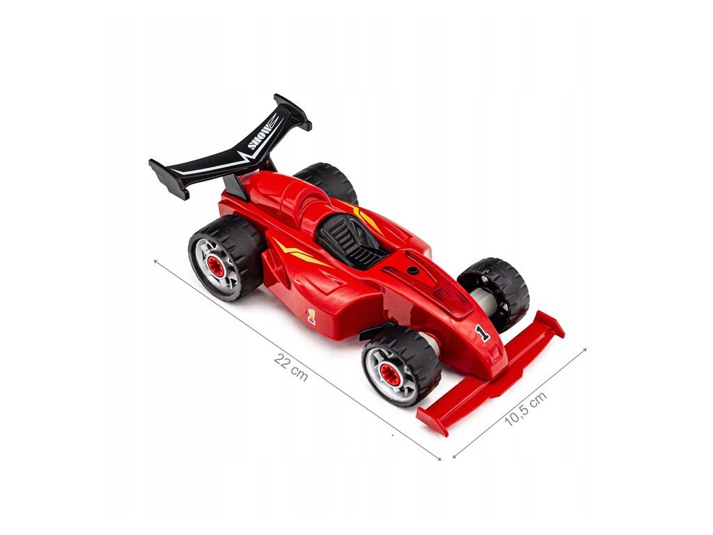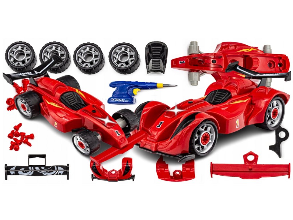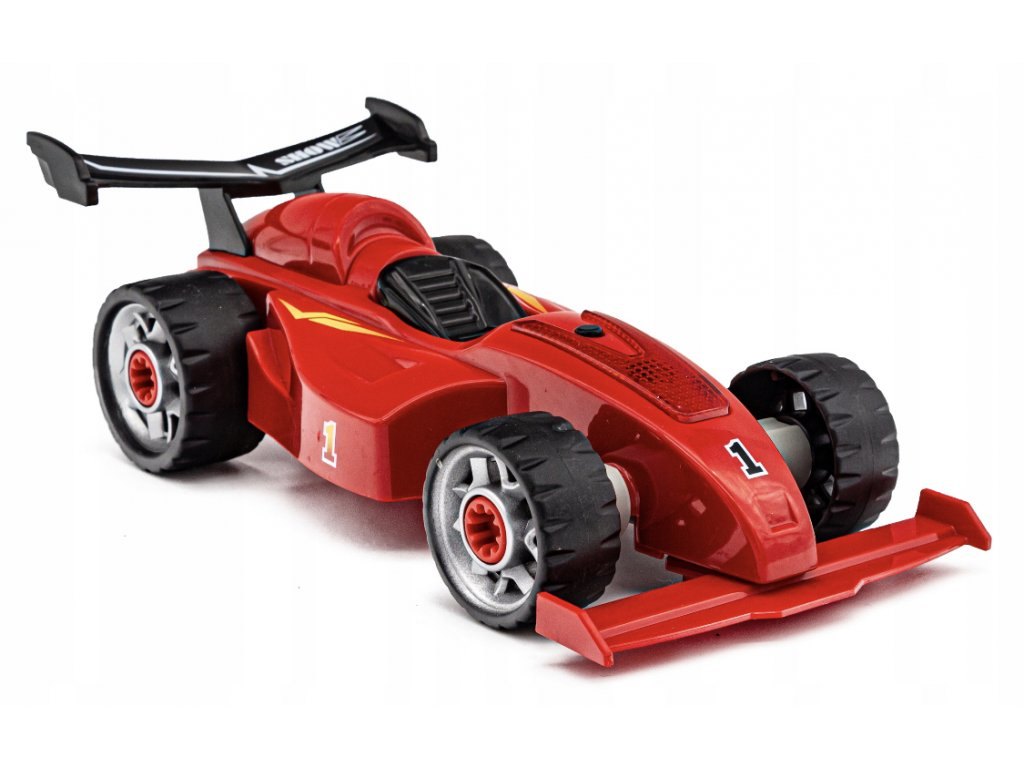 Plastová šroubovací stavebnice formule. Stavebnice má 24 dílků. Formule vydává zvuky a svítí - napájení na 2 AG13 baterie (jsou součástí). Rozměry balení cca 40 x 31 x 6,5 cm. Věk 3+