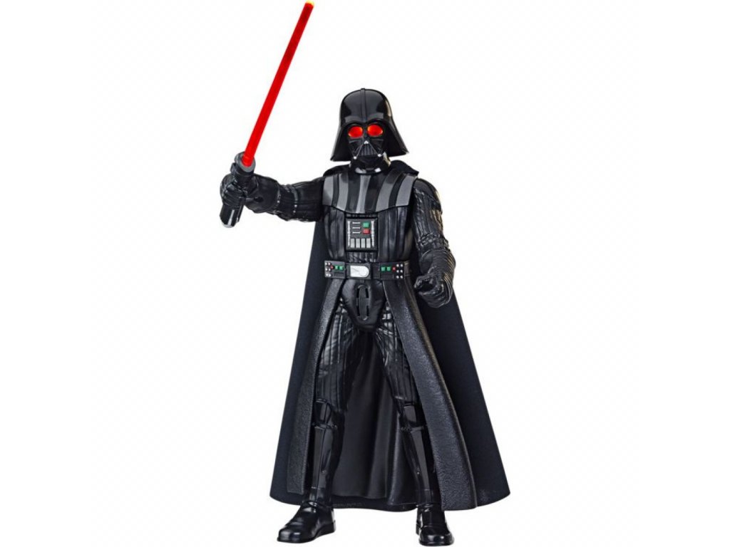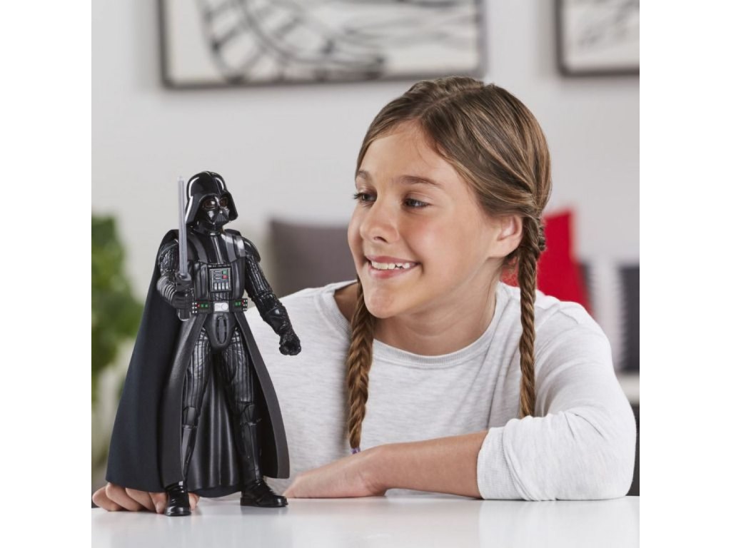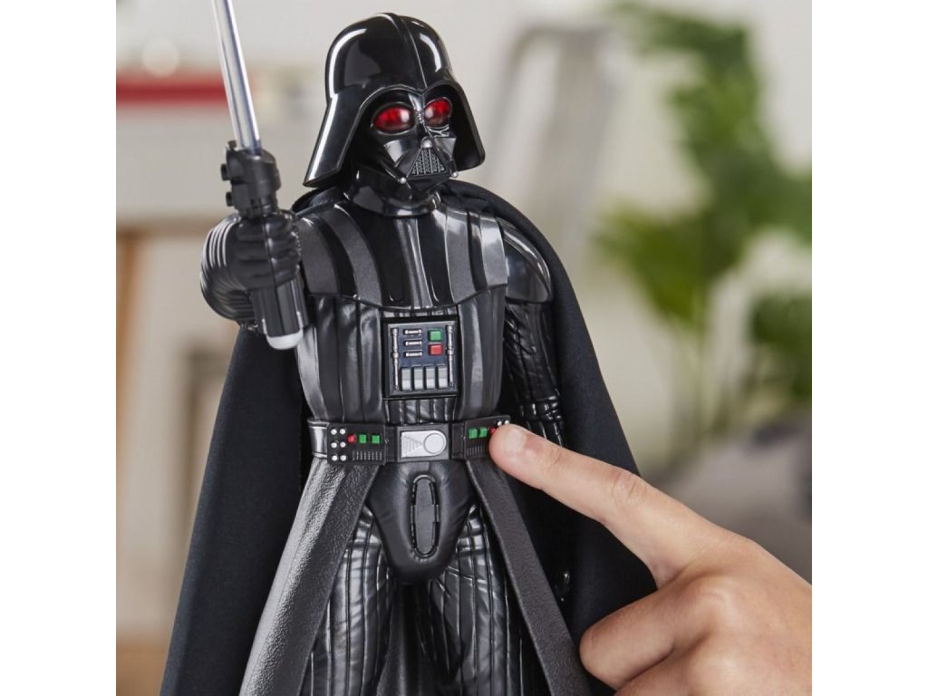 Tahle zbrusu nová elektronická figurka je veliká 30 cm a přichází právě včas, aby si mohla střihnout odvetu s Obi-Wanem Kenobim. Těšit se můžete na charakteristické hlášky a zvukové efekty. Prostor pro kreativitu nabízí tři různé režimy – stisknutím tlačítka na opasku aktivujete klasické hlášky a červené pulzování očí, druhým tlačítkem zažehnete světelný meč, abyste mohli svést vlastní imaginární bitvu doprovázenou zvukovými efekty, a třetí tlačítko na hrudi aktivuje duální režim hry. A samozřejmě nesmí chybět ani působivá kápě z jemného Věk 4+
