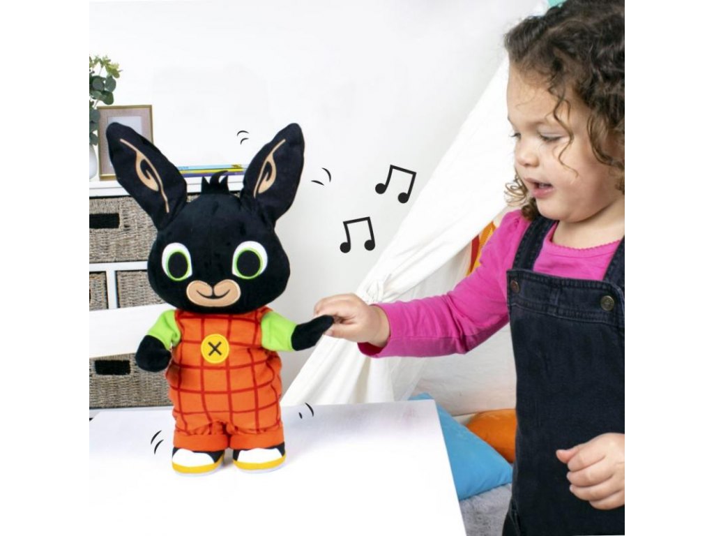 Plyšový mluvící BING populární pohádky králíček Bing. Je to skvělý společník, umí tančit i mluvit. Když stiskneš ručičku tak uslyšíš jak Bing mluví/ hraje a tančí. Je vyrobený z měkoučkého mazlivého vysoce kvalitního materiálu. Součástí balení jsou 3AA baterie, které se dají vyměnit.