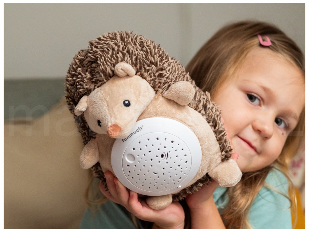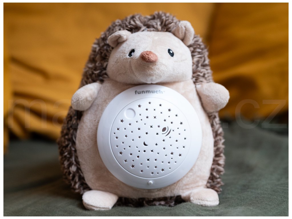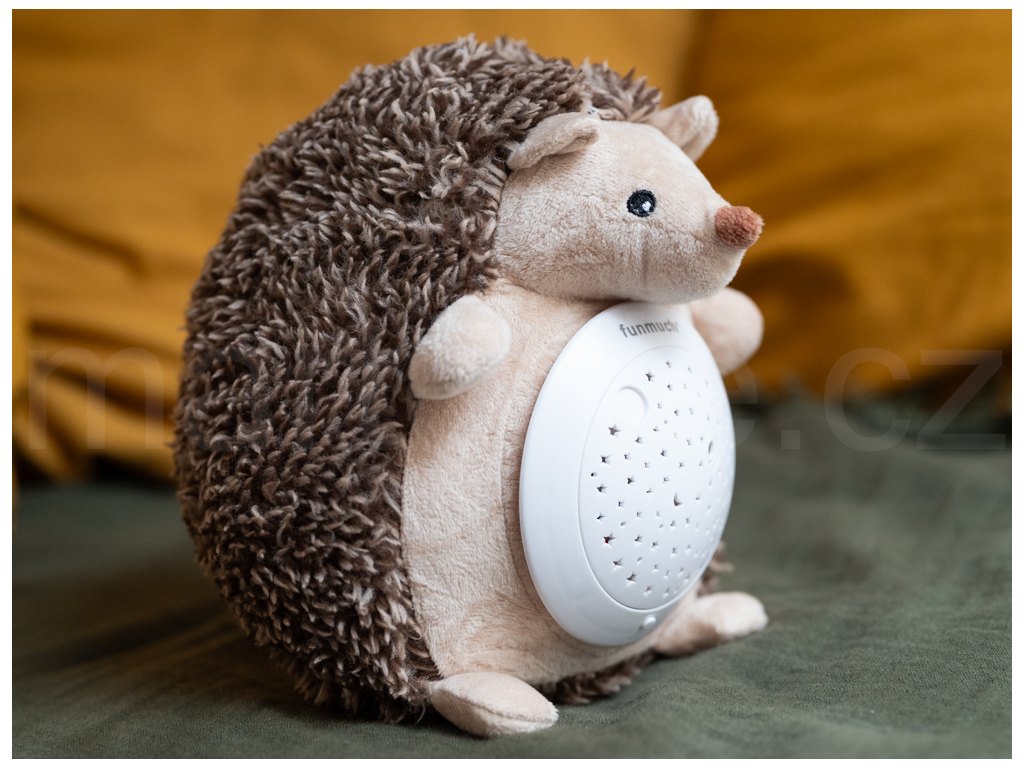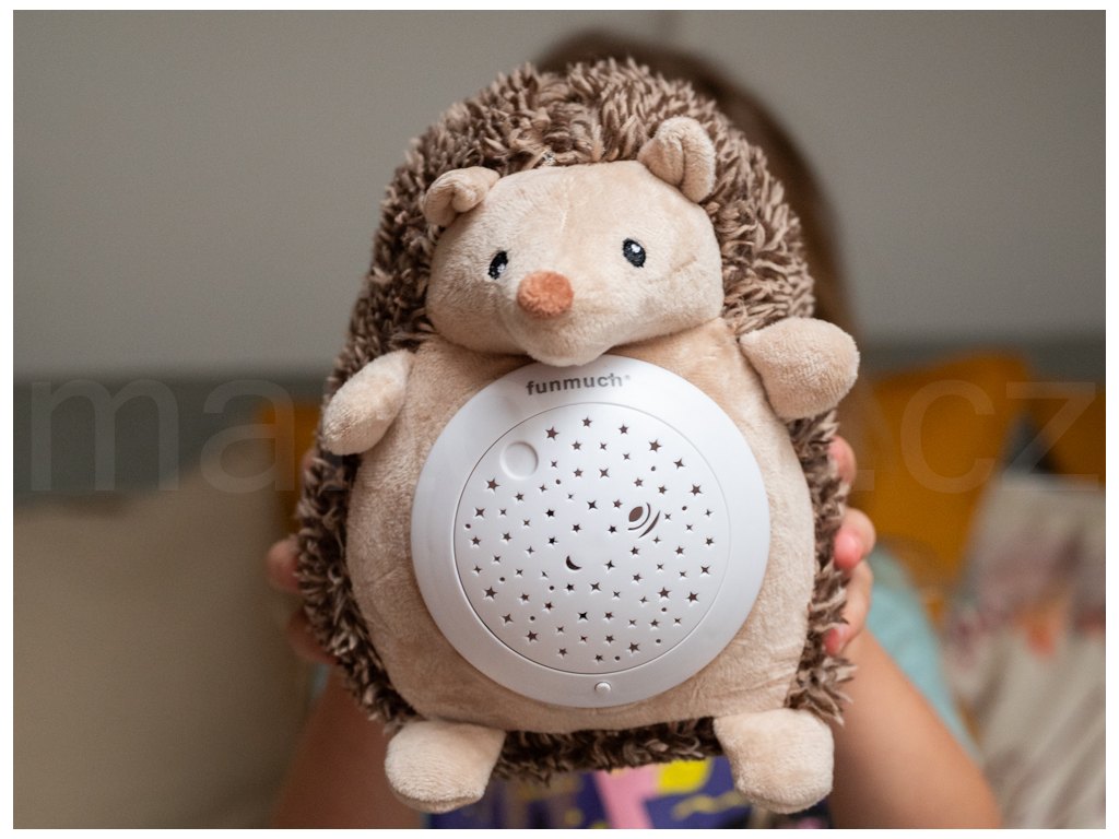 Usínací ježek s projekcí. Velikost 20 cm. Baterie 3xAAA nejsou součástí. Projektor na bříšku ježka svítí, hraje a otáčí se. Otočením projektoru proti směru hodinových ručiček se spustí ukolébavka a během hraní se projektor otáčí do původní polohy. Tím se hýbe i projekce hvězdné oblohy. Projektor jde vyjmout z bříška ježka. Dozadu projektoru se vkládají baterie. Projekce se zapíná tlačítkem.