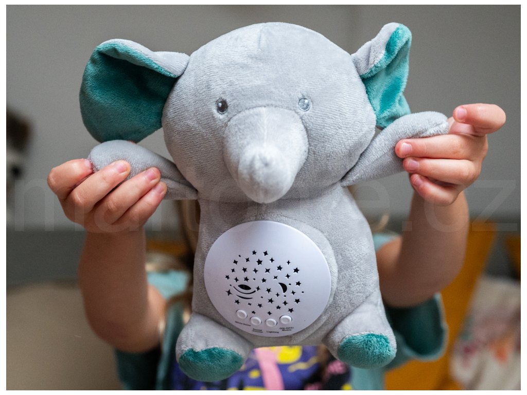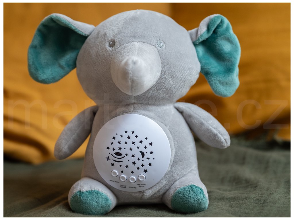 Usínáček slon 22cm - projektor, hudba, bílý šum