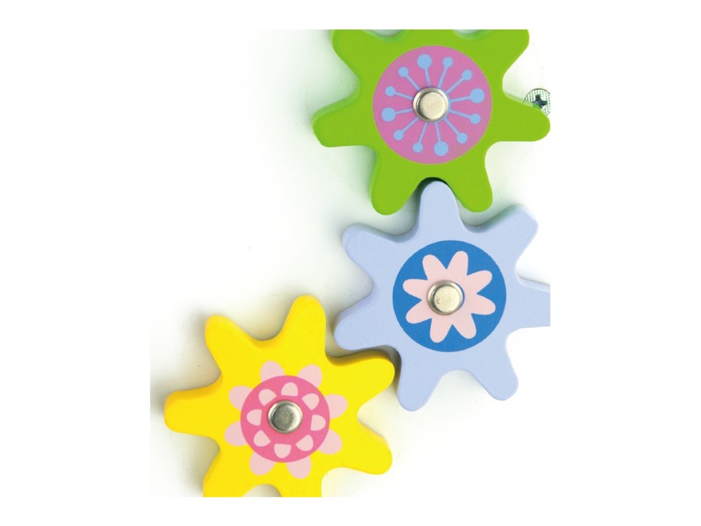 Kromě nácviku chození může dítě s touto krásnou hračkou trénovat i jemnou motoriku. Přední panel s otáčecími prvky a posuvnými korálky děti zaujme a poskytuje další prostor pro zkoumání a zábavu. Otáčení hodinovými ručičkami, putování šnečka cestičkou nebo provlékání korálků děti zabaví alespoň na takovou dobu, abyste si stihli vypít kávu.