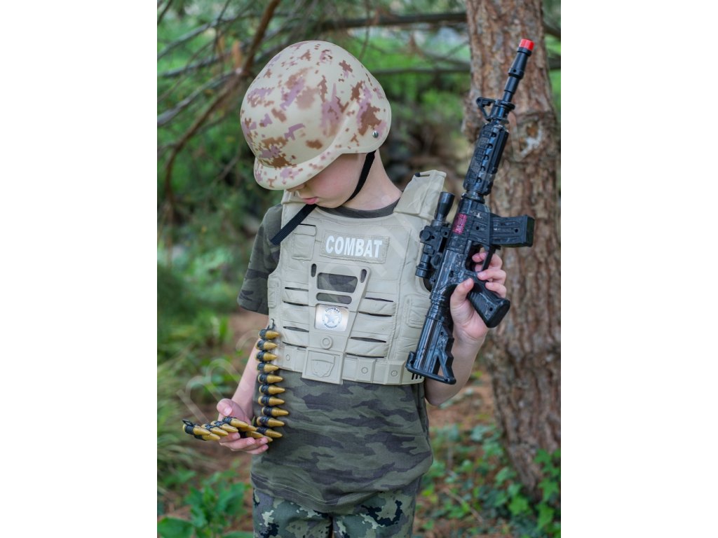 Zelená Vojenská sada s vestou, helmou a zbraní